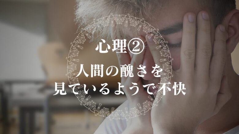 ルッキズムに絶望する人の心理の2つ目は、「人間の醜さを見ているようで不快」です。