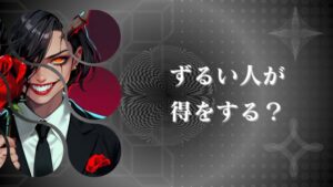 短期的に見れば、ずるい行動、具体的には嘘や裏切り、責任転嫁等は本人の利益を増加させることもままあるでしょう。詐欺師とかグレーゾーンギリギリを攻めた情弱ビジネスを果敢に行う、嘘で盛りまくって高額商材を上手い事売りまくる営業職の人とかがこうした人ですよね。