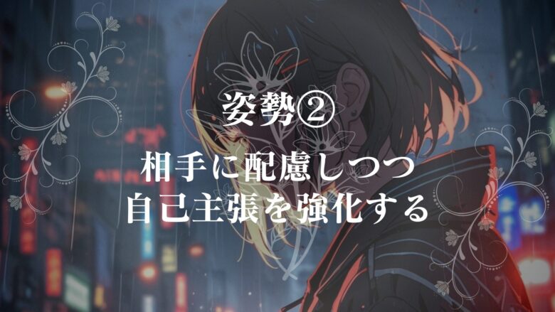 - 姿勢②:相手に配慮しつつ自己主張を強化する
