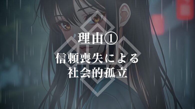 ずるい人が得をするように見えて長期的には損な理由の1つ目は、「信頼喪失による社会的孤立」です。
