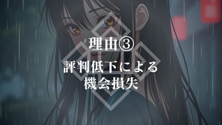ずるい人が得をするように見えて長期的には損な理由の3つ目は、「評判低下による機会損失」です。
