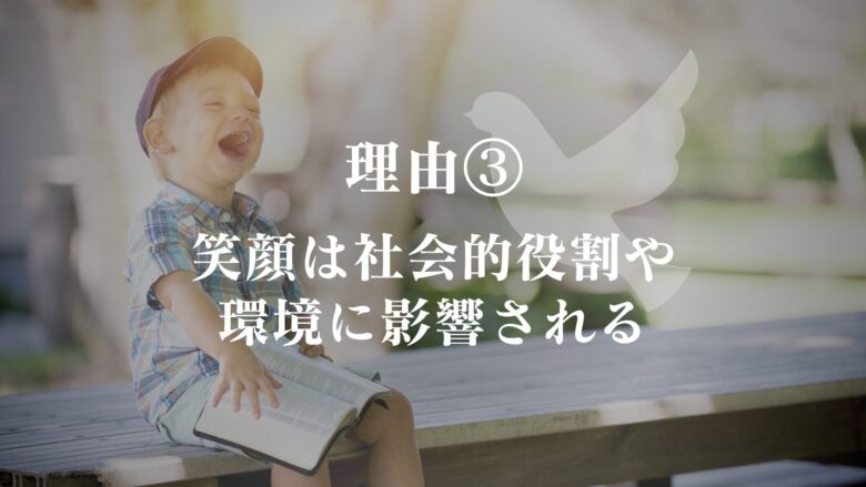 - 理由③:笑顔は社会的役割や環境に影響される