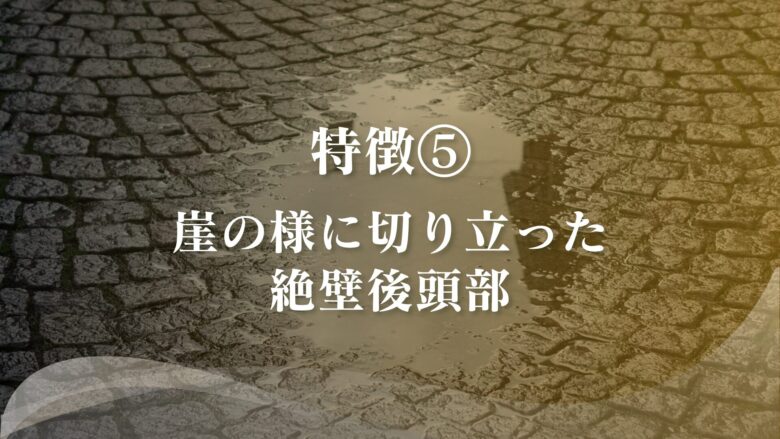 - 特徴⑤:崖の様に切り立った絶壁後頭部
