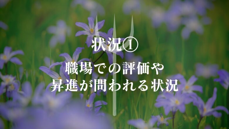 謙虚が悪徳になる状況の1つ目は、「職場での評価や昇進が問われる状況」です。