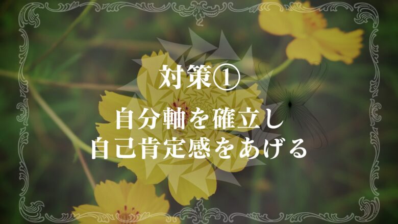 - 対策①:自分軸を確立し自己肯定感をあげる