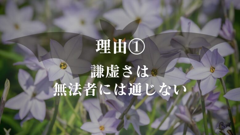 謙虚が美徳から悪徳になりうる理由の1つ目は、「謙虚さは無法者には通じない」というものです。