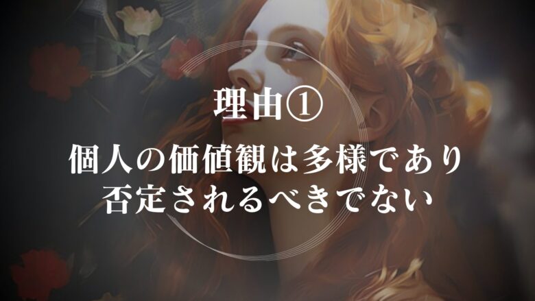- 理由①:個人の価値観は多様であり否定されるべきでない