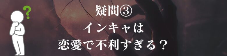 確かに、男性に関してはインキャだと恋愛は不利でしょう。ただ、女性に関して言えば、性格が陽であろうが陰であろうが特に関係ありません。