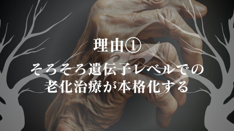 - 理由①:そろそろ遺伝子レベルでの老化治療が本格化する