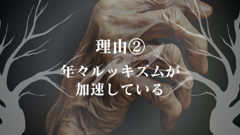 つぎは、近い将来老けた見た目への憎悪が加速する理由について、見ていきたいと思います。近い将来老けた見た目への憎悪が加速する理由は、以下の通りです。