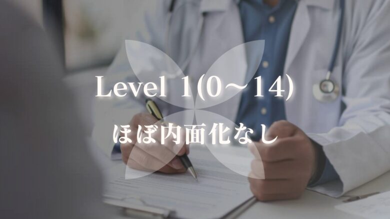 Level 1(0〜14)では、ルッキズムの軽度の内面化が起こっている状態です。前述の通り、私もここに属しますね。このフェーズにある方は、「比較反応を察知→流す→価値行動へ戻す」というプロセスを徹底し内ルッキズムの内面化の阻止と価値に沿った行動を中心に組み立て直していくことが必要になります。