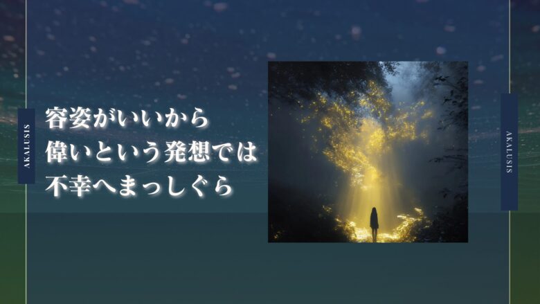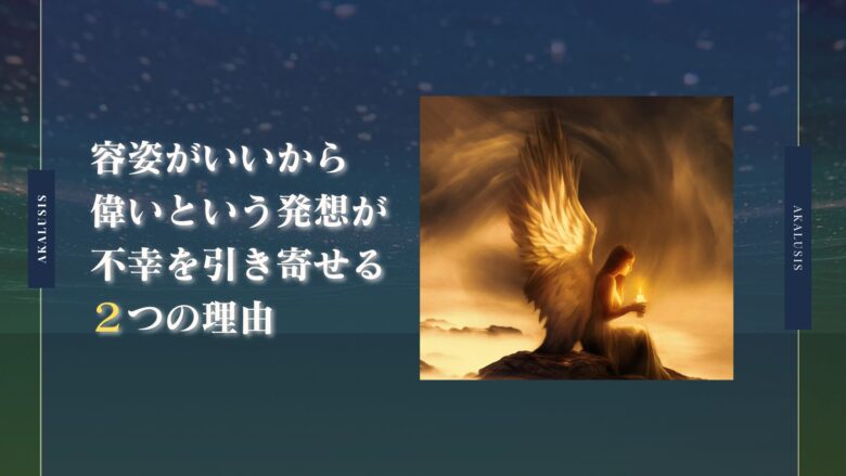 もう聡明なあなたならお気づきでしょう。容姿がいいから偉いという発想をしていたら、不幸になると。そこで、ここでは具体的に改めて、容姿がいいから偉いという発想が不幸を引き寄せる理由について、見ていきたいと思います。