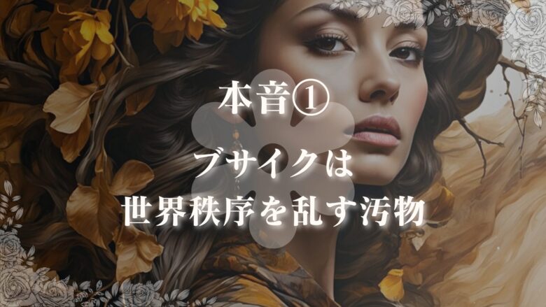 容姿がいいから偉いという人のエグイ本音の1つ目は、「ブサイクは世界秩序を乱す汚物」というものです。