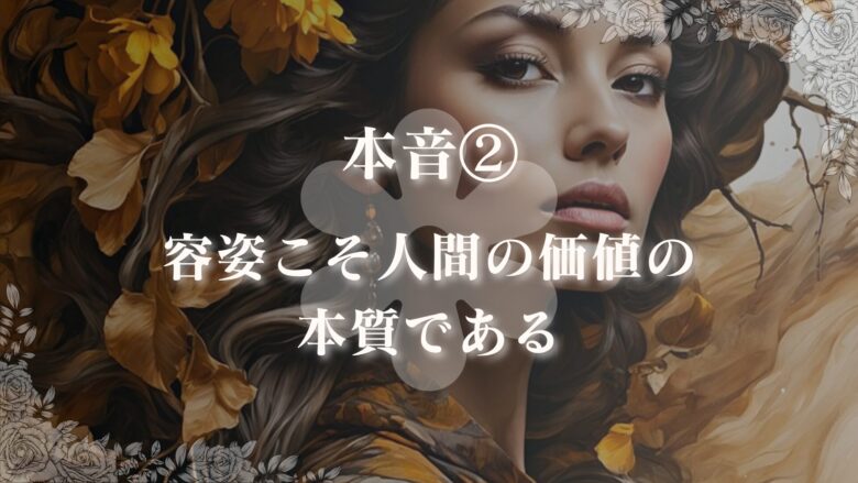 容姿がいいから偉いという人のエグイ本音の2つ目は、「容姿こそ人間の価値の本質である」というものです。