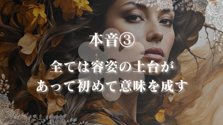 容姿がいいから偉いという人のエグイ本音の3つ目は、「全ては容姿の土台があって初めて意味を成す」というものです。