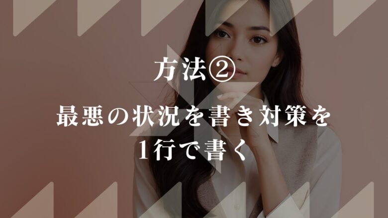 今すぐできる簡単なことを難しく考える癖を治す方法の2つ目は、「最悪の状況を書き対策を1行で書く」です。
