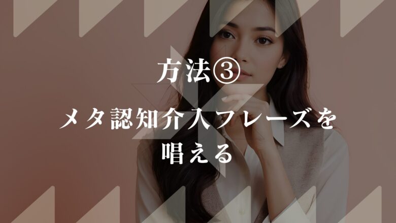 今すぐできる簡単なことを難しく考える癖を治す方法の3つ目は、「メタ認知介入フレーズを唱える」です。