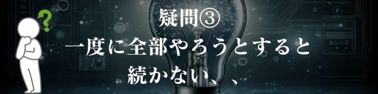 最後に、簡単なことを難しく考える時にありがちな疑問について、こたて行きたいと思います。