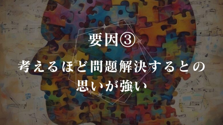 簡単なことを難しく考える背景にある要因の3つ目は、「考えるほど問題解決するとの思いが強い」です。