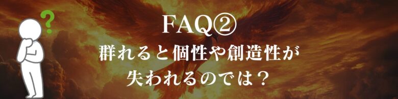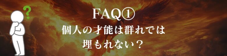 確かに、群れる事でこの才能が埋もれるリスクはあります。ただ、構造(役割分担・心理的安全性)を整えれば個人の長所が引き出されて、相乗効果が発生しますから、必ずしも埋もれるとは言えません。集団が個を活かすか潰すかは設計次第と言えるでしょう。