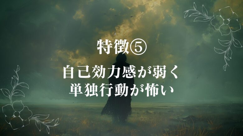 - 特徴⑤:自己効力感が弱く単独行動が怖い