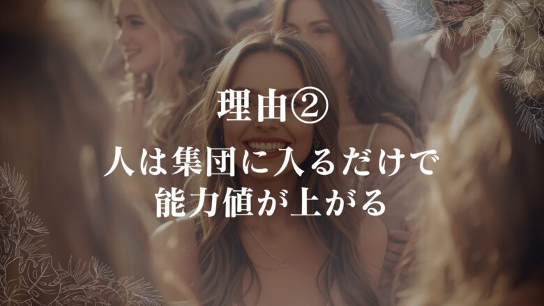 群れる力が実は最強のスキルである理由の2つ目は、「人は集団に入るだけで能力値が上がる」ということです。