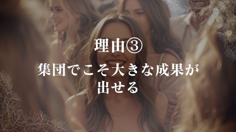 群れる力が実は最強のスキルである理由の3つ目は、「集団でこそ大きな成果が出せる」ということです。