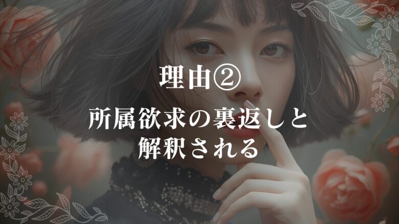 そのため、所属欲求をみせていないような人が群れる価値を否定するような発言をすると、外面では否定しつつ内面で所属を渇望しているくせに、強がっているのだと解釈されがちといえるでしょう。