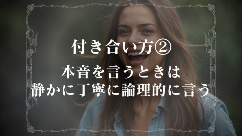 - 付き合い方②:本音を言うときは静かに丁寧に論理的に言う