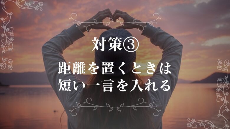 怒らない事ですぐ見捨てる人と誤解されないための対策として、「距離を置くときは短い一言を入れる」というものもあげられます。