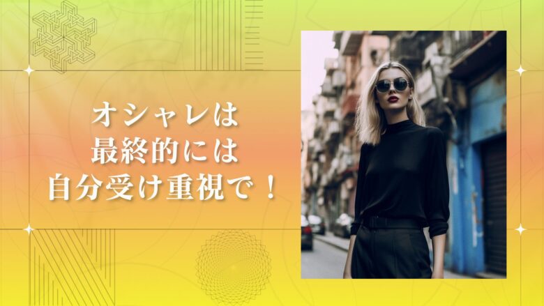 オシャレとは、辞書的には「洗練されていて気の利いた様子」ですが、私なりに思うのは「現状のトレンドをを適度に取り入れつつも独自の色を出し洗練させる事」ではないかと思っています。