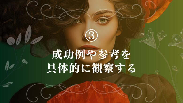 オシャレする勇気がない人がまずすべきことの3つ目は、「成功例や参考を具体的に観察する」です。