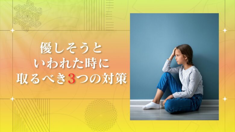 そのため、「優しそう」と言われたら、少し自分の内外を見直す必要がありますので、ここでは、「優しそう」といわれた時にどうしたらいいかについて、考えていきたいと思います。優しそうといわれた時に取るべき対策は、以下の通りです。