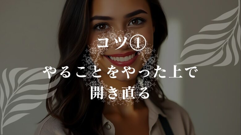 つぎは、開き直りを有効活用するコツについて、詳しく見ていきたいと思います。開き直りを有効活用する最強のコツは、以下の通りです。