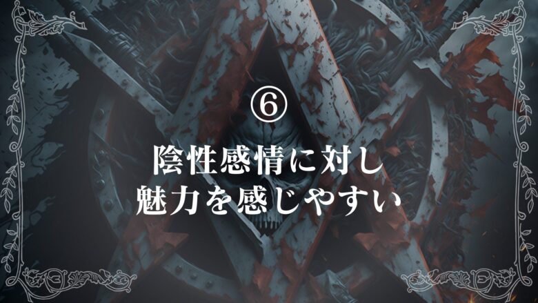 - 特徴⑥:陰性感情に対し魅力を感じやすい