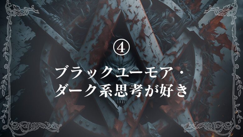 - 特徴④:ブラックユーモア・ダーク系思考が好き