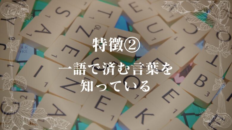 • 特徴②:一語で済む言葉を知っている