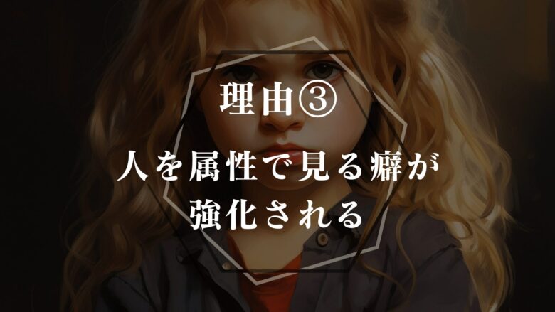 勝ち組or負け組という分類が下らない以上に有害な理由の3つ目は、「人を属性で見る癖が強化される」です。