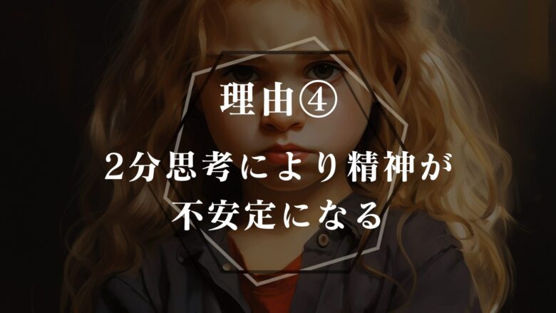 勝ち組or負け組という分類が下らない以上に有害な理由の4つ目は、「2分思考により精神が不安定になる」です。