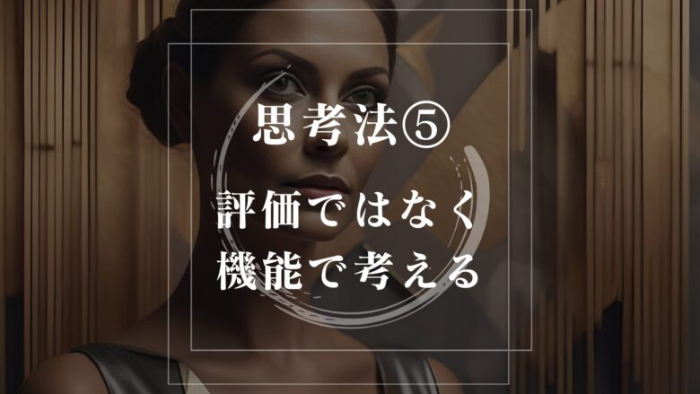 勝ち組or負け組の下らない2分思考から脱却する思考法の5つ目は、「評価ではなく機能で考える」です。