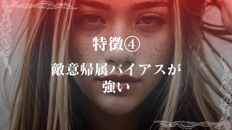 大人しい人を特に嫌う人の心理的特徴の4つ目は、「敵意帰属バイアスが強い」です。