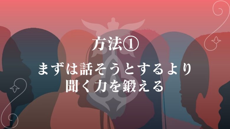 - 方法①:まずは話そうとするより聞く力を鍛える