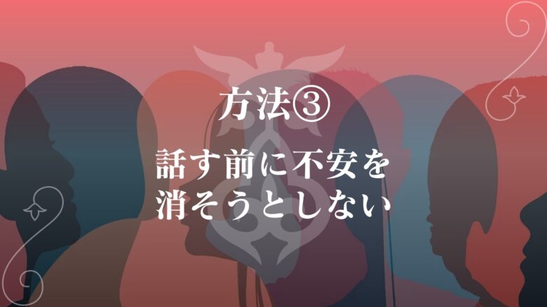 コミュ障でも人見知りでも会話がうまくなる方法の3つ目は、「話す前に不安を消そうとしない」です。