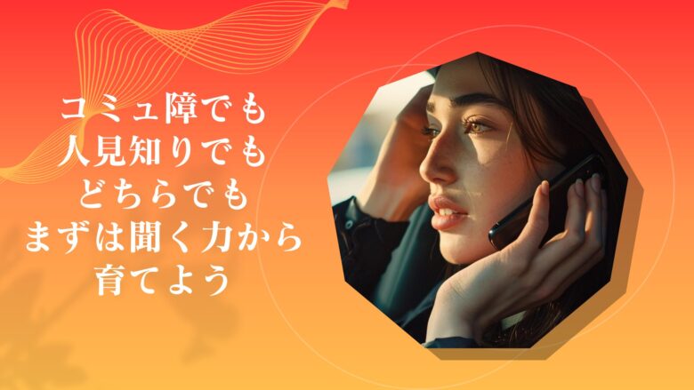 人見知りの人は最初のかかわりを持つのに苦労するものの、その後は普通に会話ができますが、コミュ障の人はコミュニケーションスキル自体の拙さが問題なので、慣れてきても会話がうまくいきません。いずれにせよ、まずは話そうとするよりも、聞く力を鍛えるのが最善ではあります。