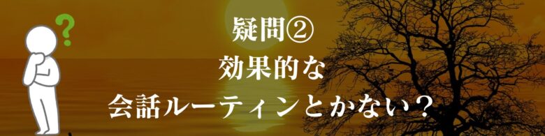 すぐに使える効果的な会話ルーティンとしては、「相手の発言を30秒以内に一言で要約する(傾聴)→オープンクエスチョン(イエスorノーで答えられない質問)を必ず2回投げる→自分の不安を軽く認めてから話す」というものが最適だと思います。
