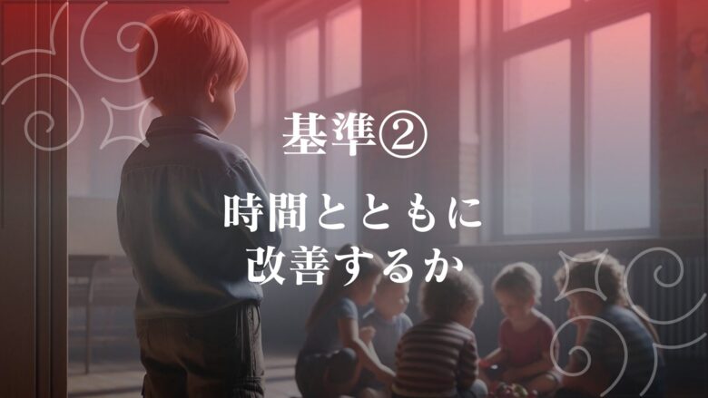 | 時間経過 | 慣れると改善する | 慣れても改善しにくい |