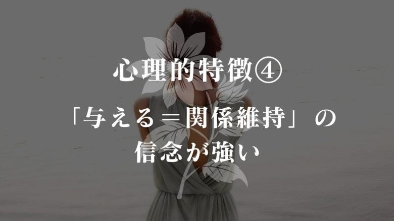 - 心理的特徴④:「与える=関係維持」の信念が強い