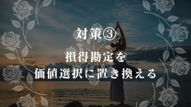 見返りを求めてしまう心理を今すぐ手放す対策の3つ目は、「損得勘定を価値選択に置き換える」です。