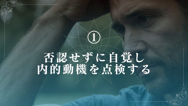 自分の口癖が関わってはいけない人の口癖だった時にすべきことの1つ目は、「否認せずに自覚し内的動機を点検する」です。