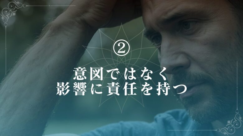 自分の口癖が関わってはいけない人の口癖だった時にすべきことの2つ目は、「意図ではなく影響に責任を持つ」です。